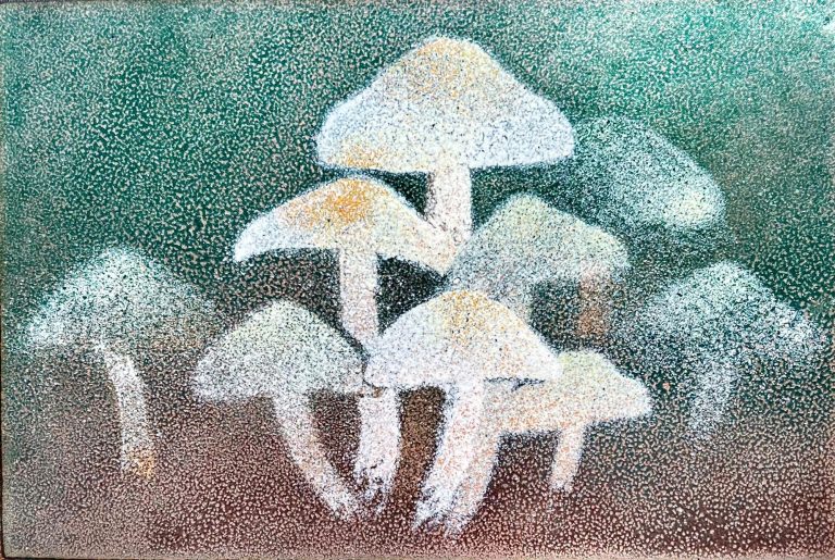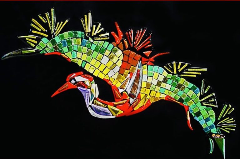 Her artistic journey includes enamelling, mosaics, stained glass, sculpture and photography.