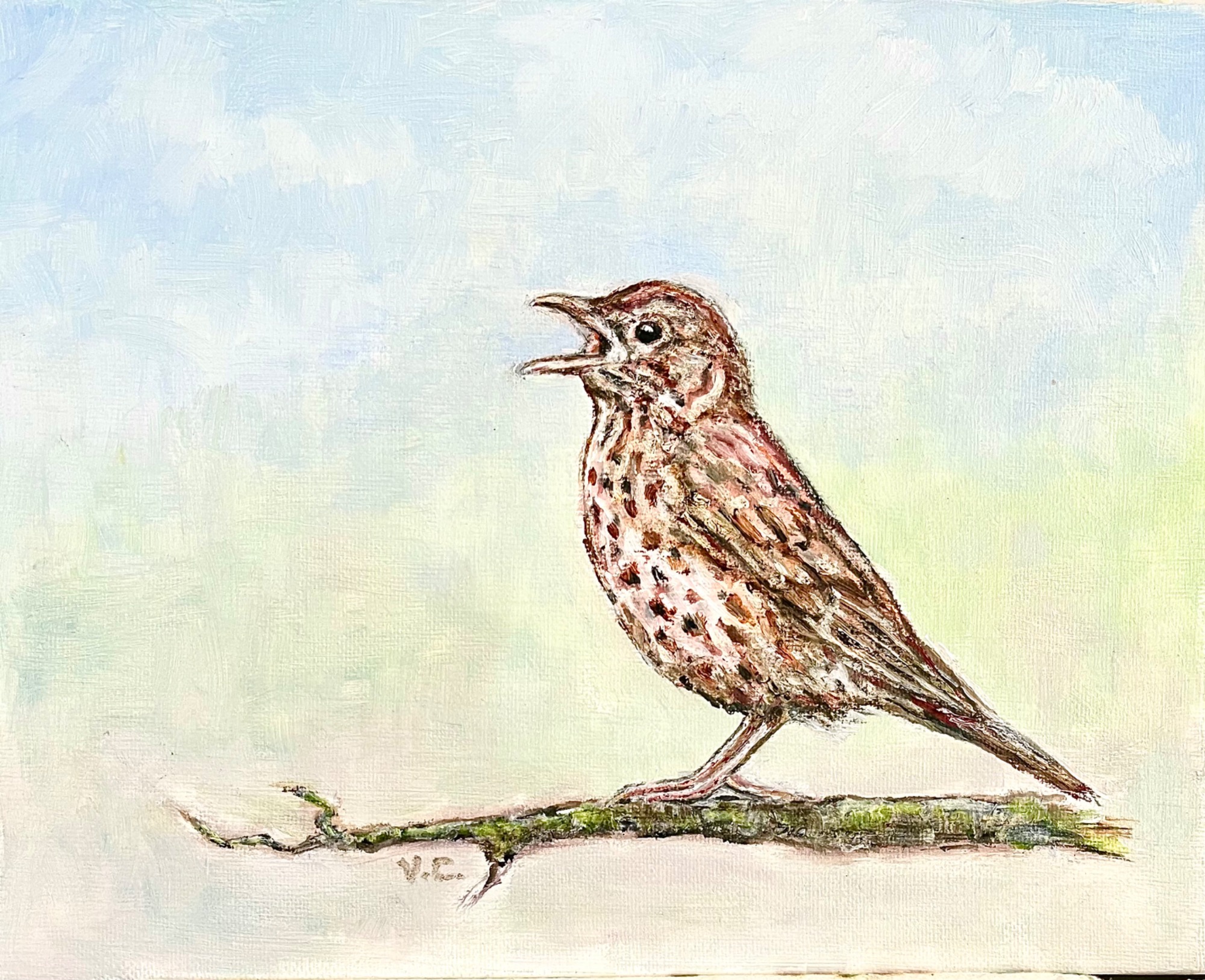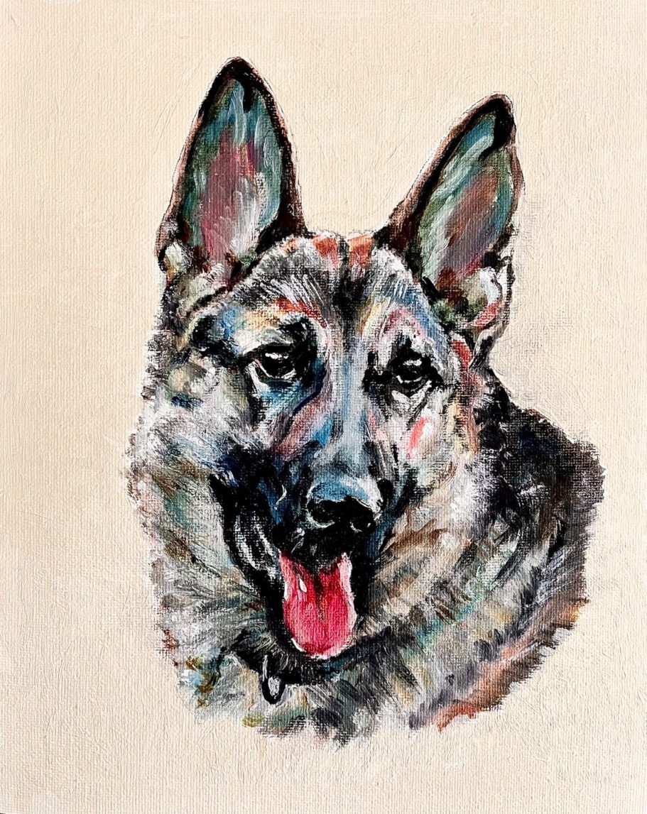 All of her paintings are produced by her own hand with no AI involvement.